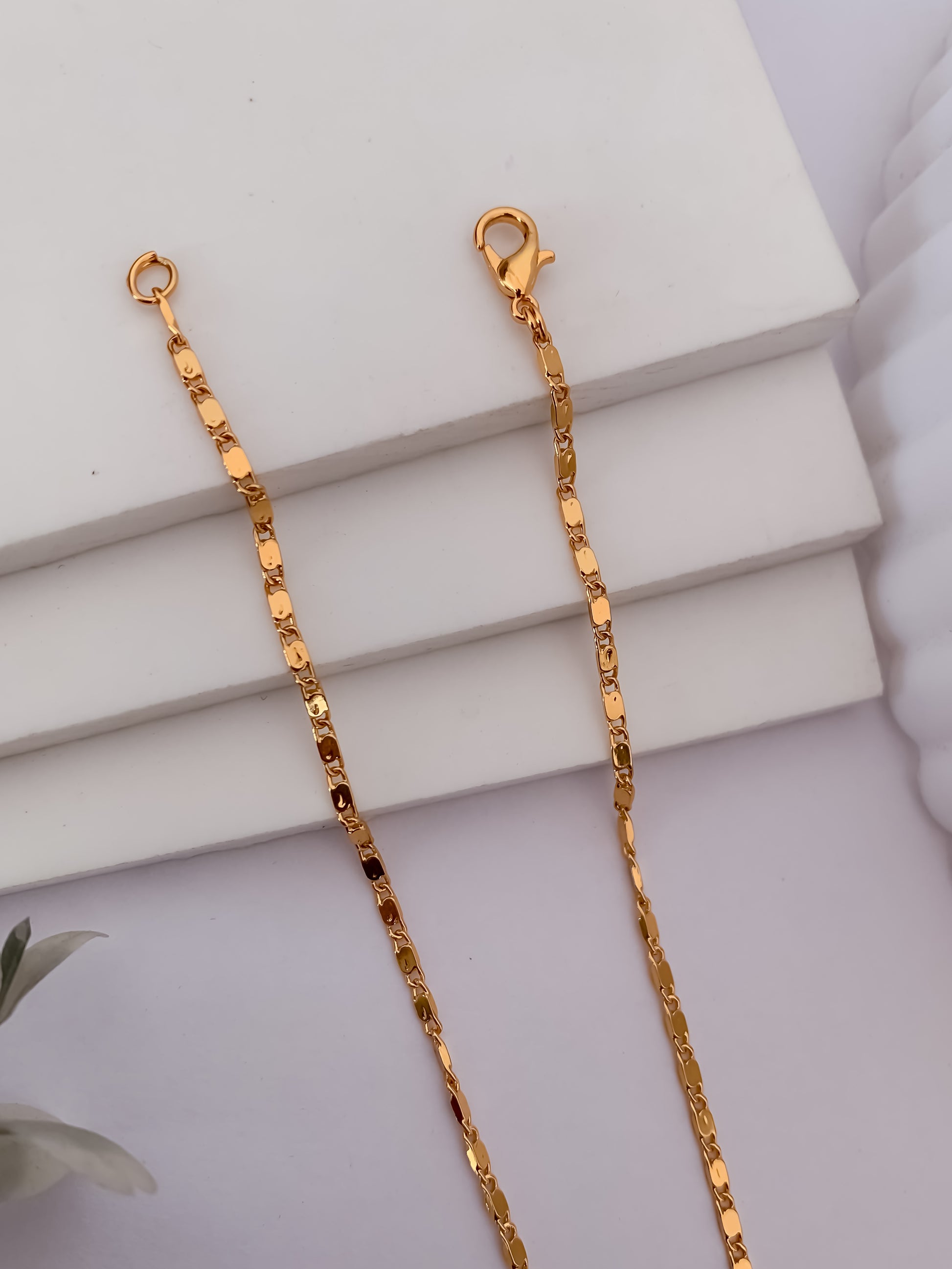 The highlight of this piece is the ruby-stone charm pendant, designed in a stylish leaf/teardrop shape with sparkling stones and a delicate hanging drop finish. The pendant gives a royal feel while keeping the overall look lightweight and comfortable for daily wear or small occasions.