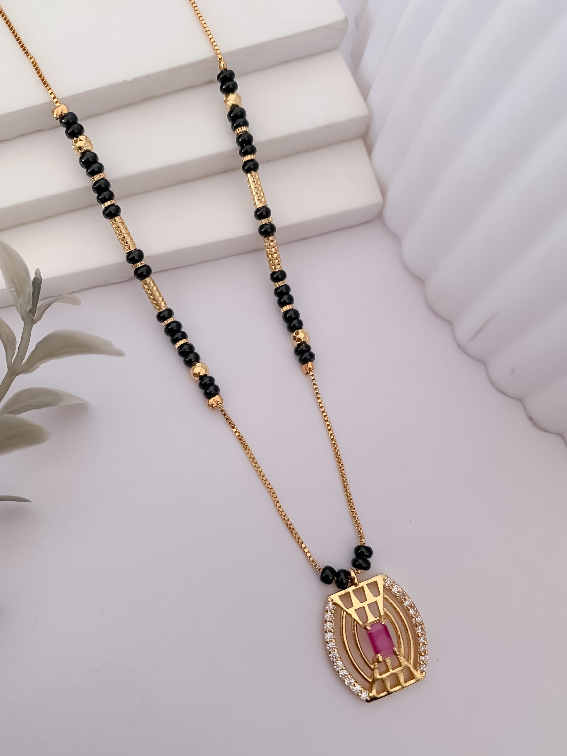 Buy 1 Get 1 Free - Ruby Glow Pendant Mangalsutra (Black Beads Minimal Chain)